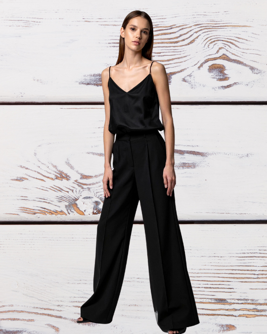 - El Palazzo es un tipo de pantalón de corte recto y pierna muy ancha, que se ajusta en la cintura y cae de manera fluida. Puede llevar pretina o pieza con elástico y/o cordones. Algunos modelos se realizan con bolsillo. Ideal para toda época y ocasión.